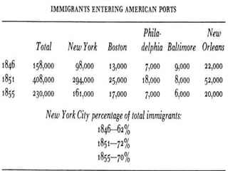Large numbers of immigrants entered the United States in the 1850s due to civil unrest, massive unemployment, and famine and disease in Europe. Germans and Irish immigrants came to America to escape these conditions, while later immigrants from Southern and Eastern Europe were fleeing religious and ethnic persecution as well as unemployment, famine, and disease.