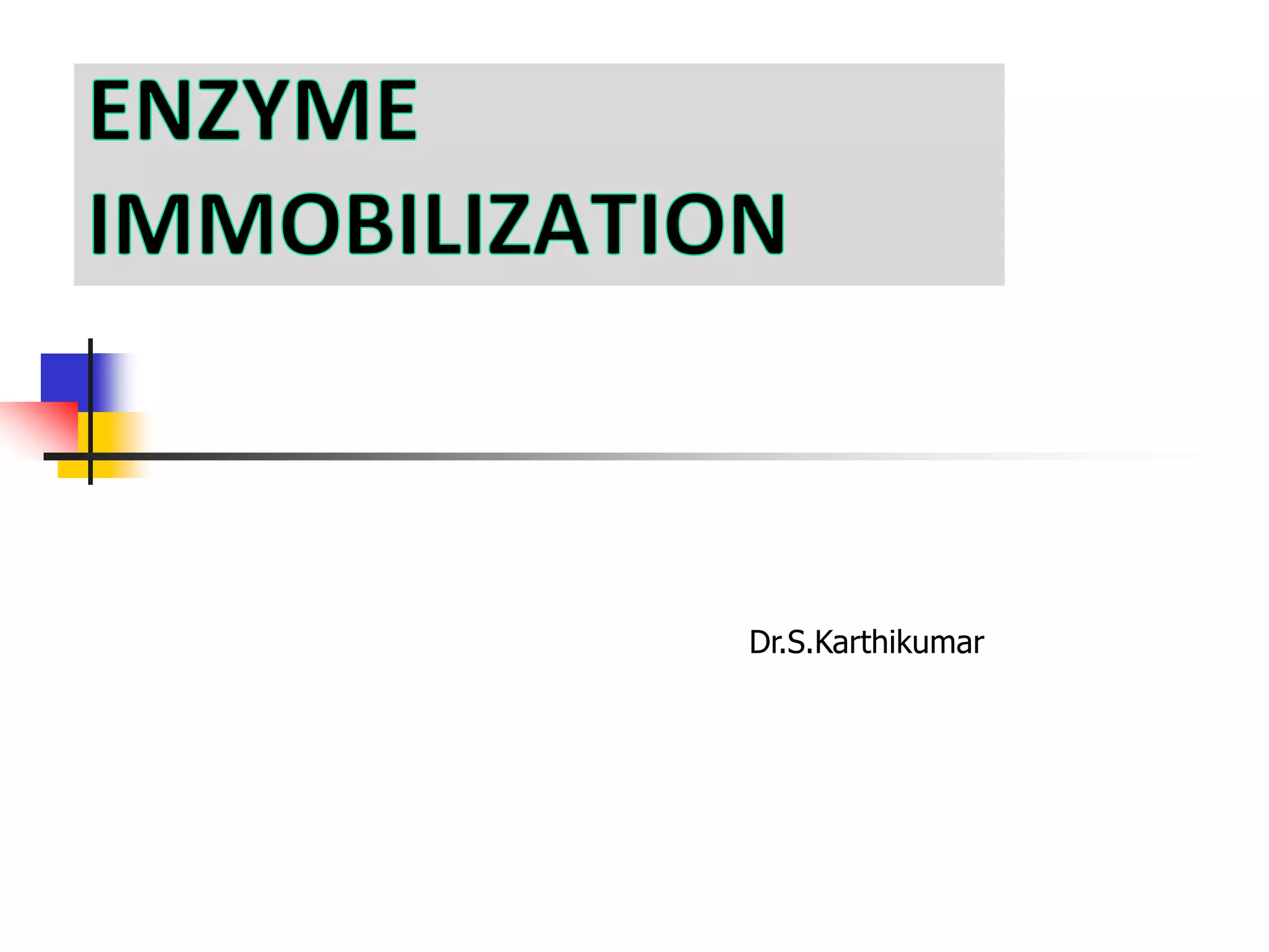 An immobilized enzyme is one that has restricted movement, confined to a solid support to enhance stability and facilitate substrate conversion. Enzyme immobilization offers various benefits, including protection from degradation, reusability, and easy separation from products, through methods such as physical adsorption, entrapment, and covalent binding. Whole cell immobilization is another approach that maintains enzyme activity within their natural environment and is effective for fermentation processes, although it may produce unwanted byproducts.