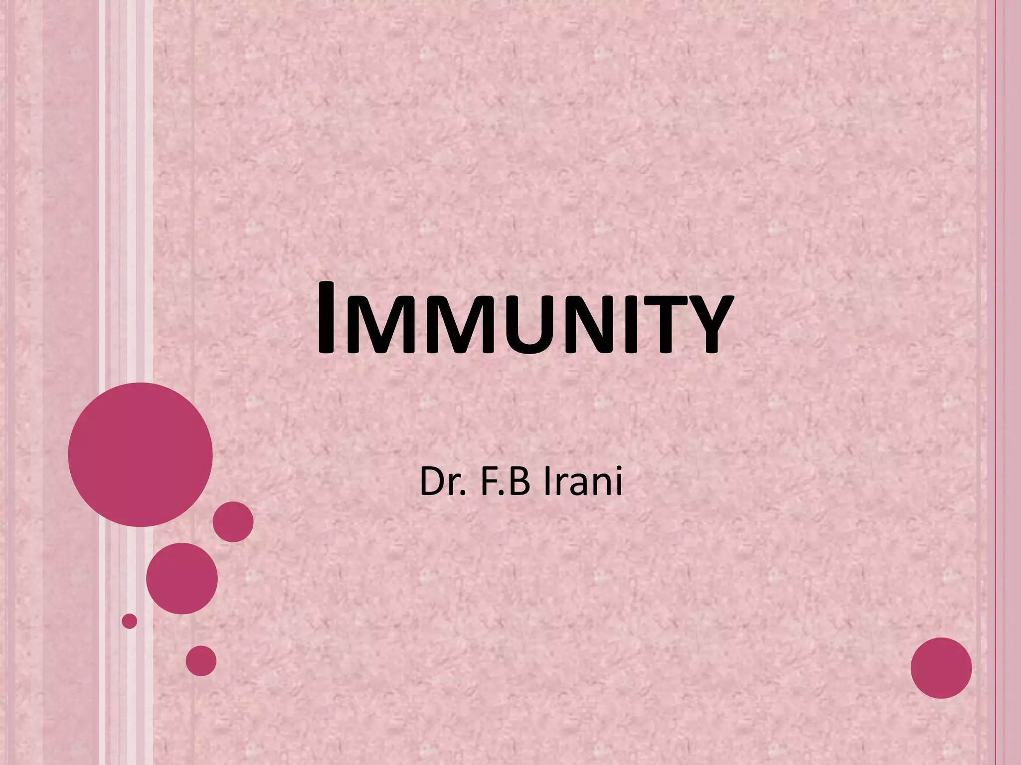 Immunity involves two main types - innate immunity which is inborn, and acquired immunity which is developed during lifetime. Innate immunity involves physical barriers and cellular responses, while acquired immunity involves humoral responses from B lymphocytes and cellular responses from T lymphocytes. Humoral immunity involves antibodies produced by B lymphocytes, while cellular immunity involves T lymphocytes. The complement system works with antibodies to help destroy pathogens.