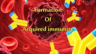 The document discusses immunology, detailing the immune system's response to antigens, including the differences between active and passive immunity. Active immunity involves the host producing its own antibodies following exposure, while passive immunity is short-term and provides antibodies from external sources. It also explains the roles of B and T cells in adaptive immunity, highlighting the processes of humoral and cell-mediated immune responses.