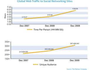 The document discusses the integration of social tools within Moodle and emphasizes social constructivism in learning, where knowledge is actively constructed through interaction. It highlights the importance of flexible learning environments and peer engagement for effective teaching and learning. Various resources and platforms for social media usage in education are mentioned, along with statistics on global social media trends.