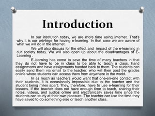 E-learning has positively impacted the education sector by providing flexibility, tools for professional development, and improved communication. It allows educators to access training anywhere and at any time. E-learning also helps develop learning paths for teachers and track their progress. This flexibility has helped increase IT skills for both teachers and students. E-learning is also an effective management tool that provides insight into skills gaps within schools.