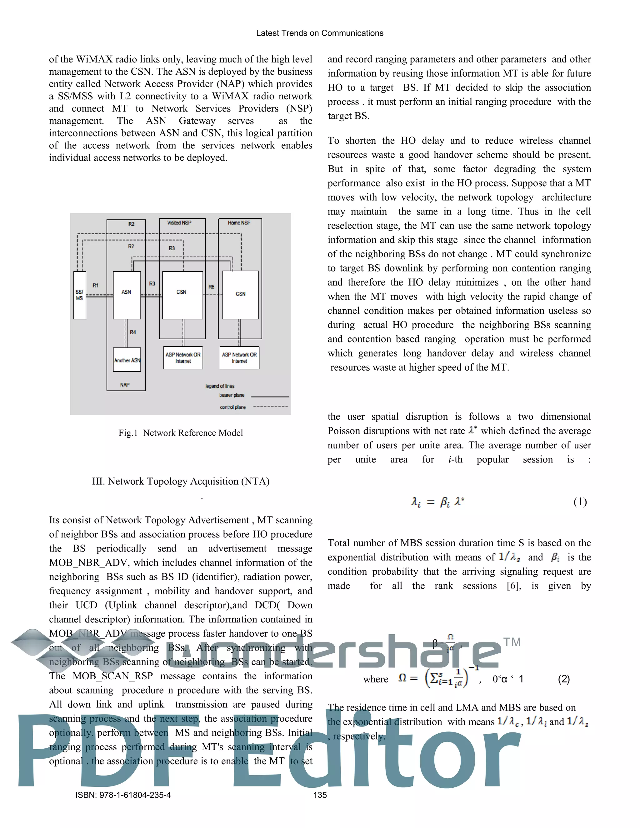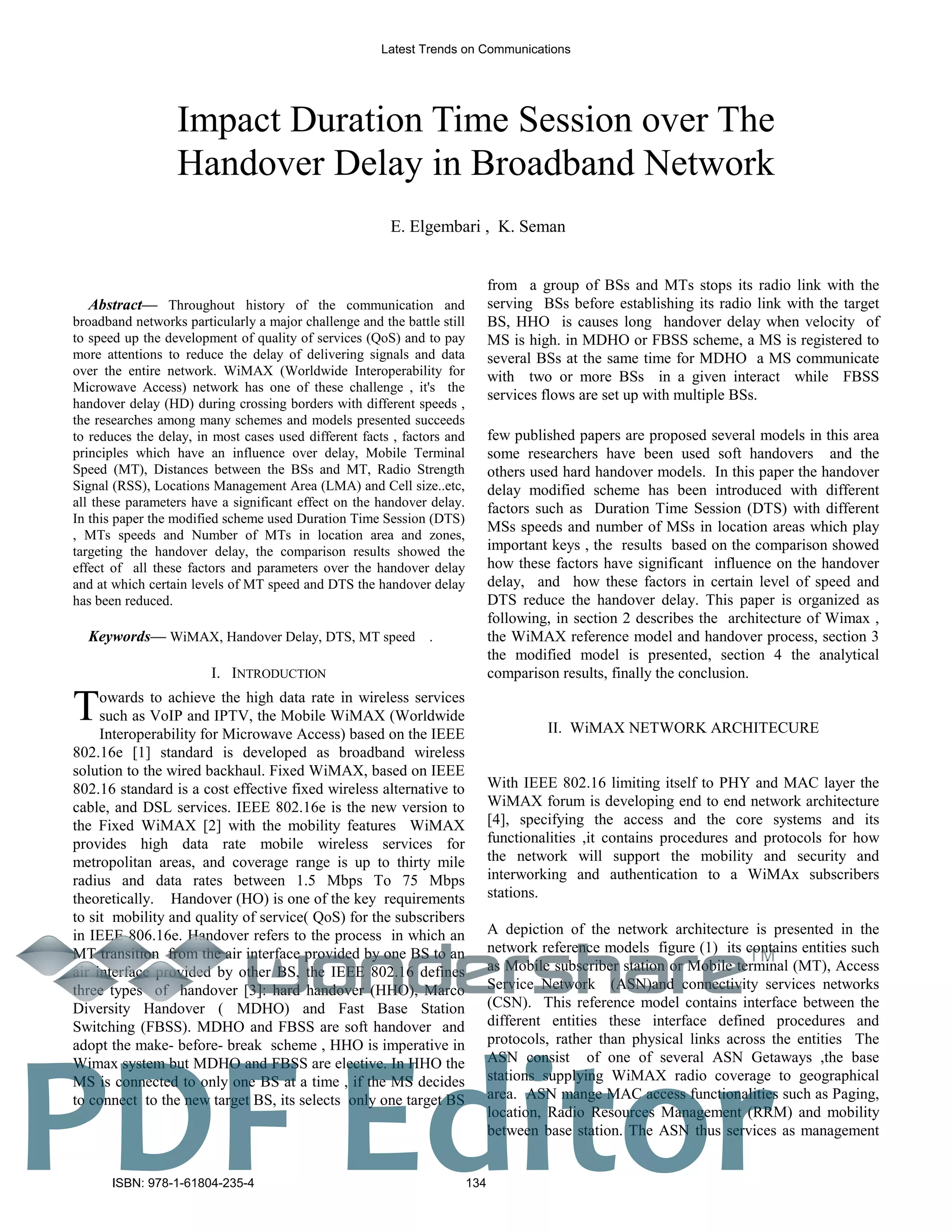 This document summarizes a study on reducing handover delay in WiMAX networks. The study examines how factors like mobile terminal speed, duration time session (DTS), and number of mobile terminals impact handover delay. It presents a modified scheme using these factors. Results show handover delay decreases inversely with DTS and is lower at higher speeds and certain DTS ranges from 60-80 milliseconds. Delays are also acceptable with higher numbers of terminals at these DTS levels. In conclusion, lower DTS and higher speeds reduce handover delay, and bandwidth channels are important to further improve network performance and delay reduction.
