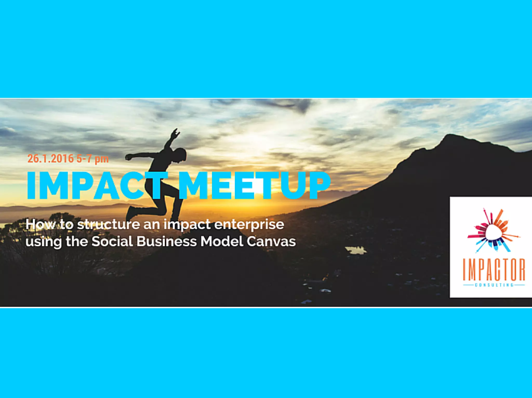 The document outlines a series of impact meetups hosted by Impactor in spring 2016, focusing on topics such as structuring impact enterprises, cooperativism, and crowdfunding. It highlights the importance of business models for social enterprises like the Aravind Eye Care system, emphasizing a value proposition that balances customer needs and social impact. Additionally, it encourages individuals interested in making a difference to join the impact ecosystem and participate in workshops and discussions.