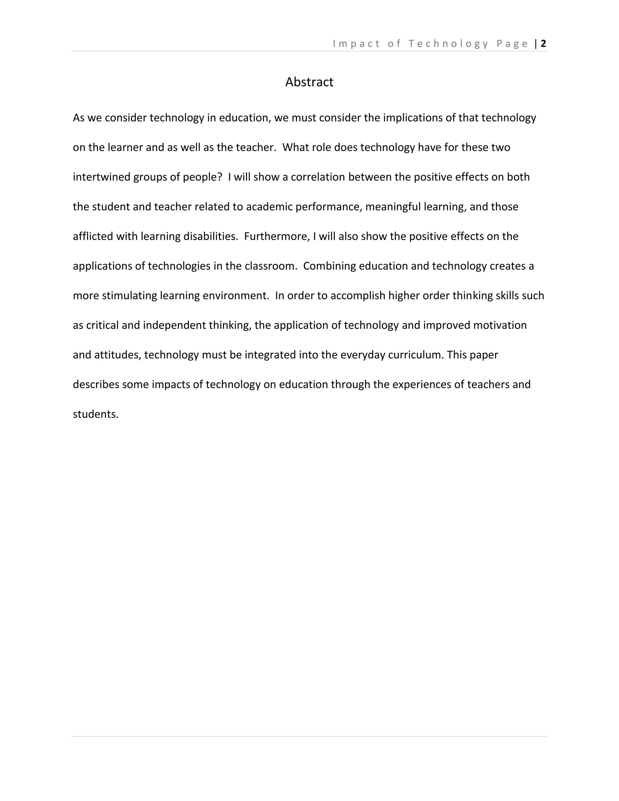 This document discusses the impact of technology in education based on a synthesis paper. It finds that technology can have positive effects on both students and teachers when integrated meaningfully into the curriculum. It leads to improved academic performance, as seen through higher test scores. It also enhances meaningful learning when used for real-world simulations and applications, rather than just drill-and-practice. For learning to be meaningful, students must see relationships between new concepts and their prior knowledge. The document also notes that technology is most effective when teachers shift to a more student-centered approach in their instructional practices.