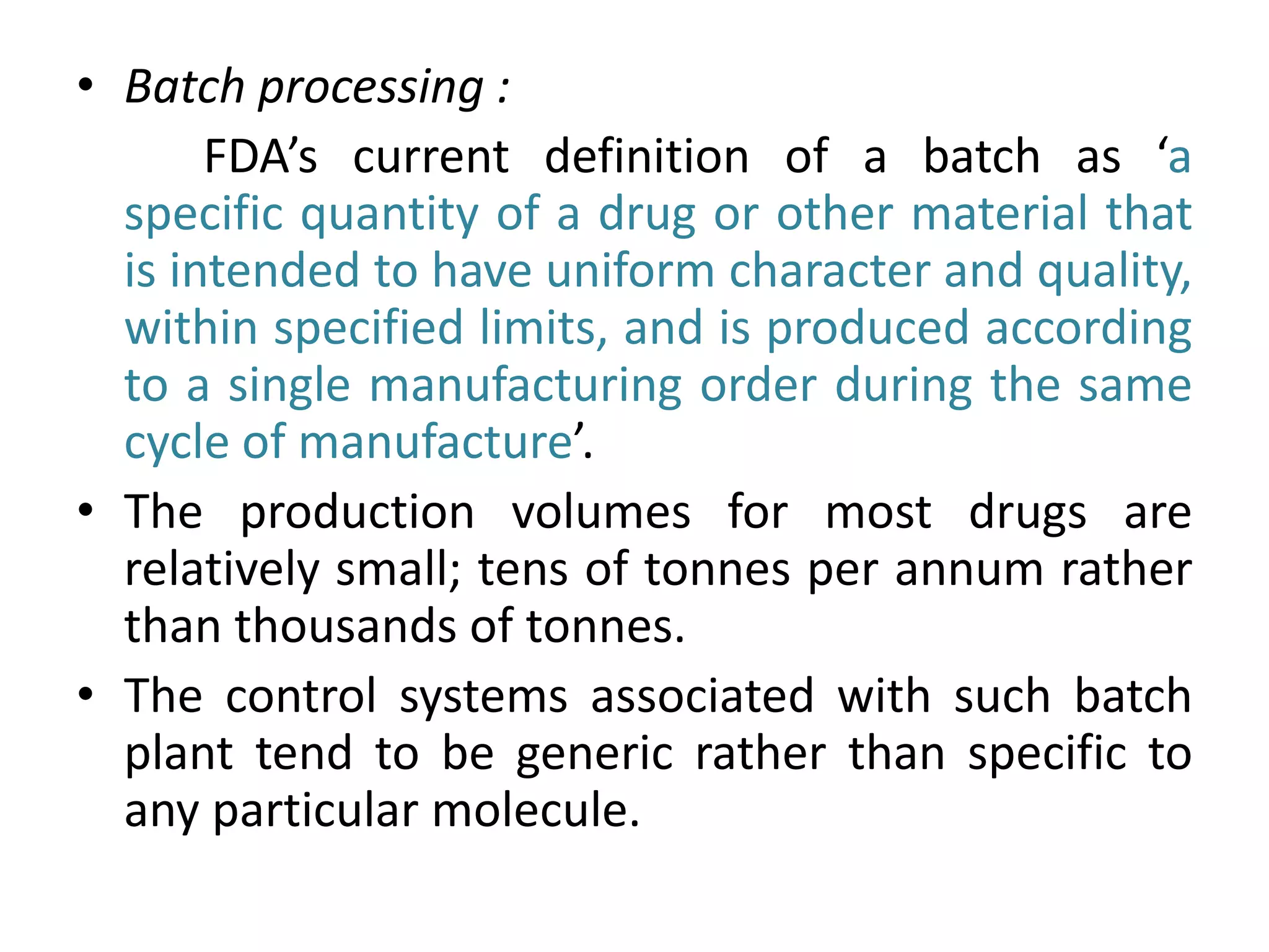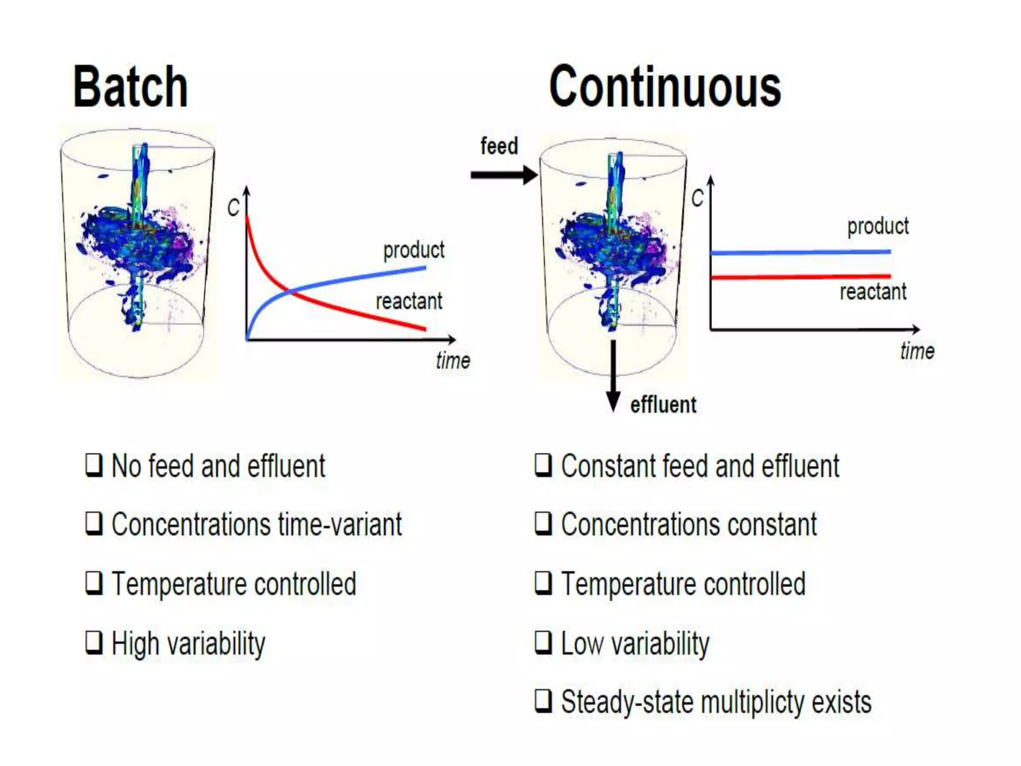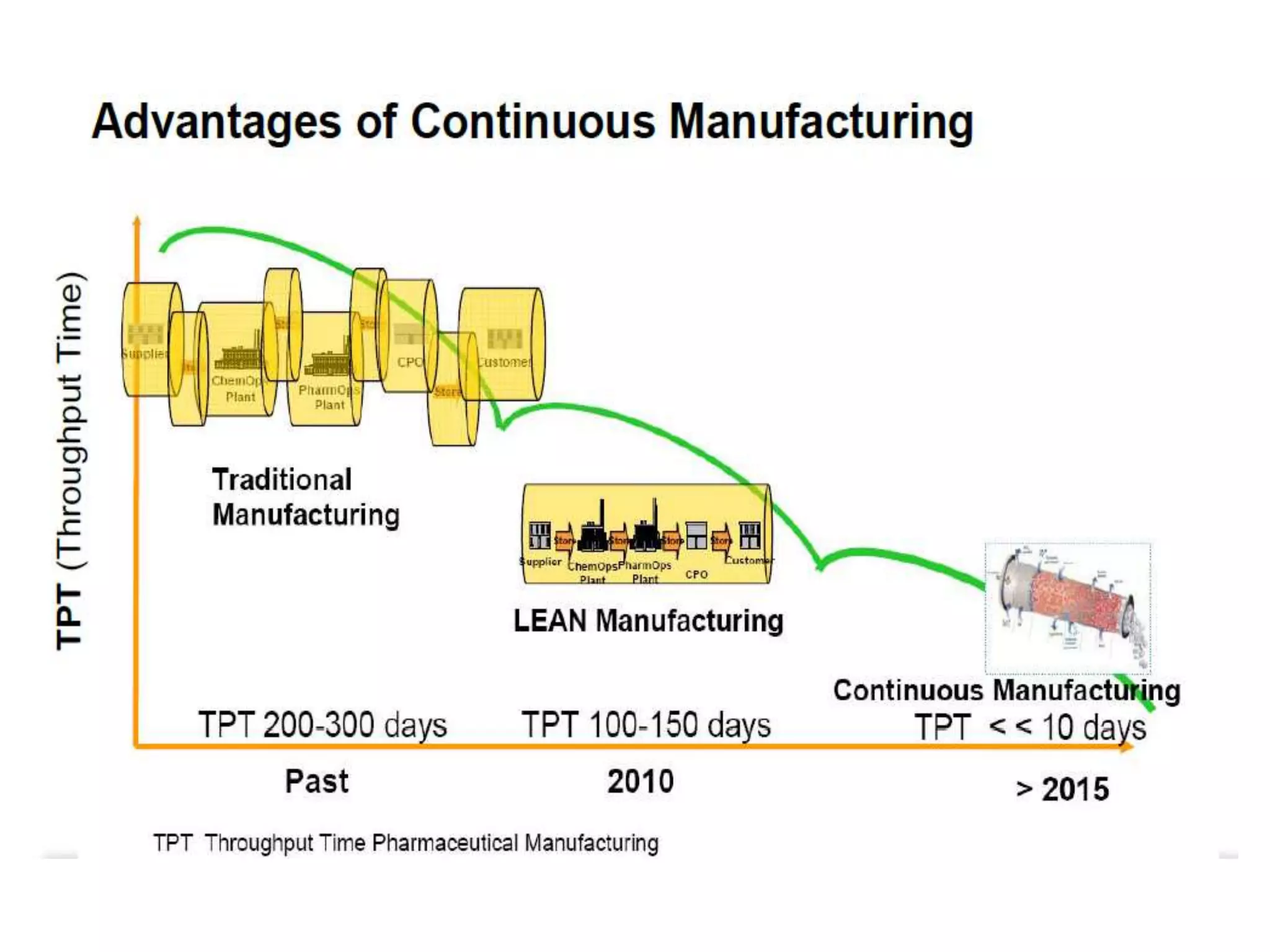 This document discusses continuous processing versus traditional batch processing in pharmaceutical manufacturing. Some key advantages of continuous processing include reduced footprint, capital and operational costs, lower raw material and intermediate inventories, and less complex scale-up. However, continuous processing also faces challenges like not being suitable for every process, requiring dedicated equipment and advanced process control approaches. The document emphasizes that process analytical technology (PAT) will play an important role in continuous manufacturing by enabling online measurement and process monitoring to ensure product quality.