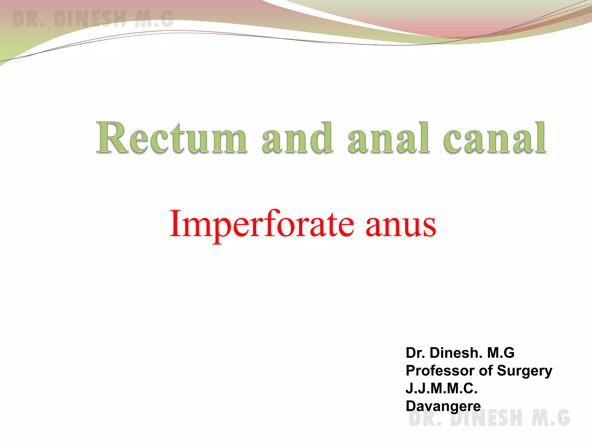 The document discusses the development of the anal canal and the surgical anatomy of the anal canal. It describes different types of imperforate anus including low and high anomalies. Low anomalies include covered anus, ectopic anus, and stenosed anus. High anomalies include anorectal agenesis, rectal atresia, and cloaca. Initial management involves assessing whether temporary colostomy is needed. Treatment of low anomalies involves dilatations or procedures like V-Y anoplasty or cutback procedure. Treatment of high anomalies includes initial colostomy followed by posterior sagittal anorectoplasty to reconstruct the anal canal. Surgical outcomes vary depending on the type of anomaly repaired.