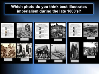The document discusses the impacts of new imperialism, both positive and negative. The negatives included loss of independence and control over land for native peoples, death from diseases and resistance to European rule, breakdown of cultures through assimilation and westernization, replacing of authority figures, and economic dependence on imperial powers. The positives included some improvements from westernization like sanitation, hospitals, and schools, the elimination of slavery in some areas, and increased life spans and literacy rates and infrastructure development. Industrialization is connected to imperialism through economic expansion and goods being valued on international markets. Slavery supported imperialism through providing labor and economic benefits.