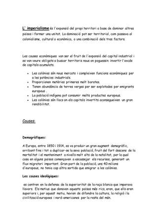 L’ imperialisme ésl'expansió del propi territori a base de dominar altres
