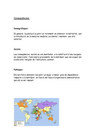 Les colònies són nous mercats i compleixen funcions econòmiques per