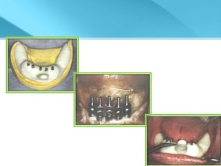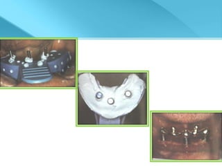 - Procedures involve medical evaluation, treatment planning, transitional dentures, surgical placement, attachment connection, and definitive prosthesis fabrication