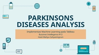 Dokumen ini membahas implementasi machine learning dalam analisis penyakit Parkinson menggunakan dataset suara biomedis untuk membedakan individu sehat dan penderita Parkinson. Model klasifikasi Random Forest mencapai akurasi 94,87%, menunjukkan efektivitas tinggi dalam prediksi. Selain itu, model Light Gradient Boosting Machine menunjukkan performa terbaik dalam metrik evaluasi lainnya.