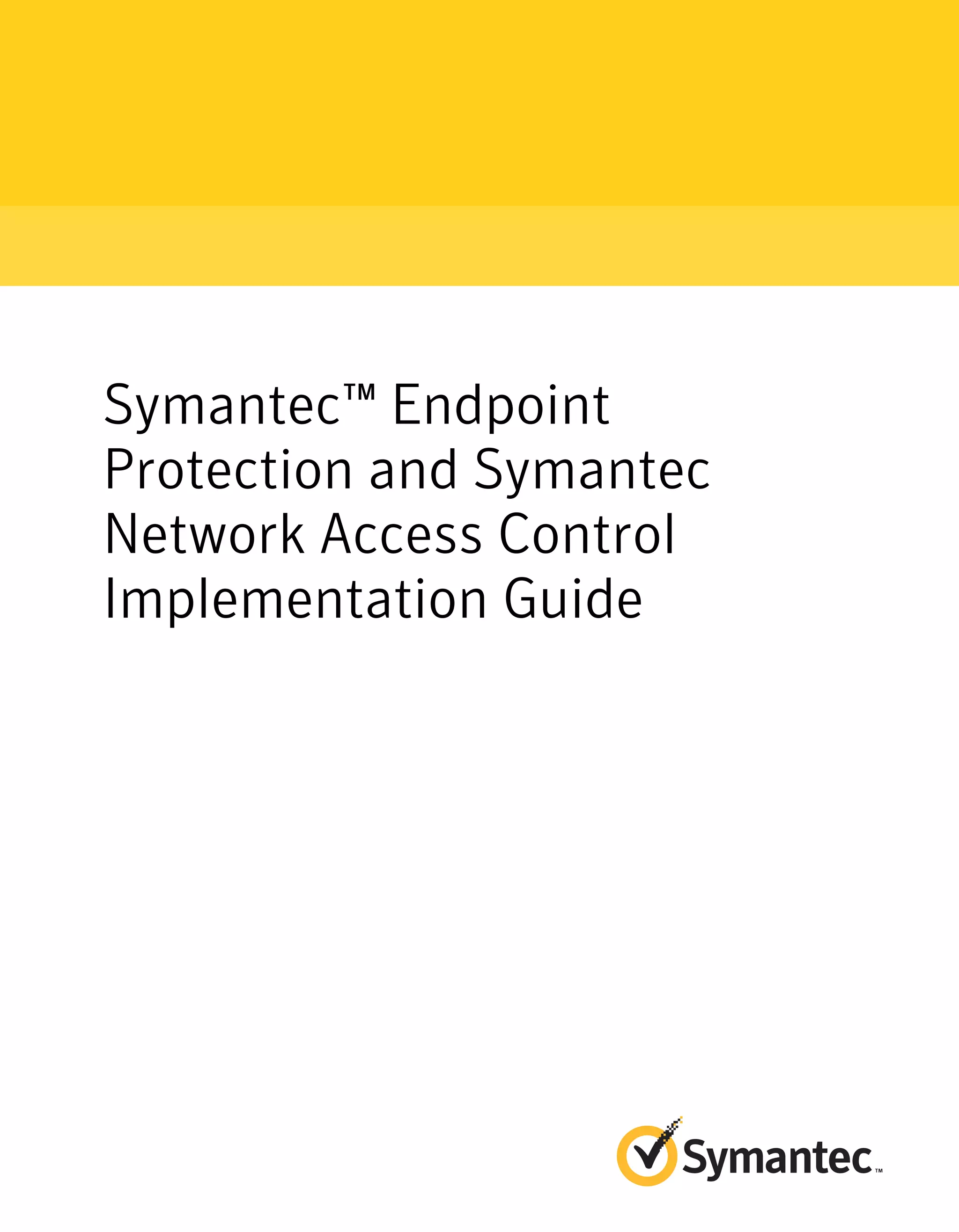 This document provides an implementation guide for Symantec Endpoint Protection and Symantec Network Access Control. It contains information about installing, configuring, and managing these products. The guide includes sections on planning installation, installing the management server and client software, upgrading and migrating from previous versions, setting up sites and replication, managing protection on clients, and using policies to manage security settings.