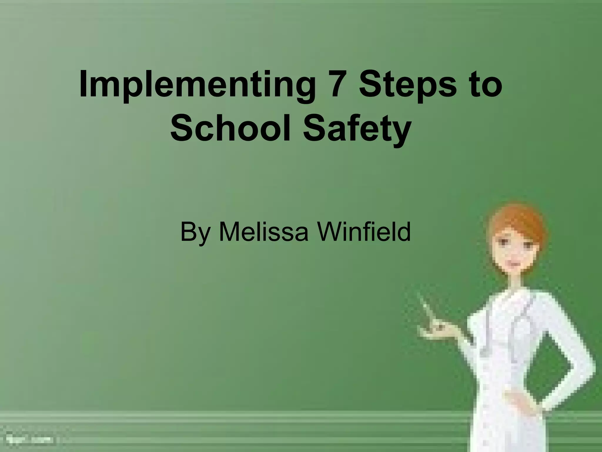 The document outlines 7 steps that schools can take to improve safety, including developing and enforcing a code of conduct, conducting emergency drills, personalizing the school environment with help boxes, analyzing incident reports, implementing effective programs, engaging parents and community, and training students and staff to recognize warning signs of violence. The school discussed has implemented several of these steps, such as an annually updated code of conduct, regular emergency drills, help boxes built by students, an after school program, and communicating with parents about incidents.