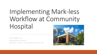 The presentation describes how a community hospital with limited resources successfully implemented a fully mark-less setup workflow for all treatment sites using SGRT. It emphasizes patients' preference for tattoo-free treatments, outlines a step-by-step implementation plan, and presents data showing that the mark-less setup achieves accuracy comparable to workflows using tattoos plus SGRT—reinforcing SGRT’s value not only for setup and efficiency, but also as a safety-enhancing tool.