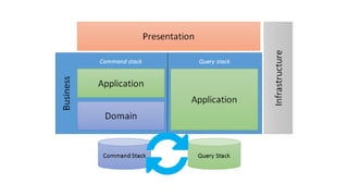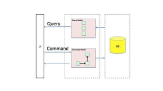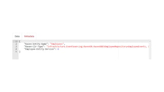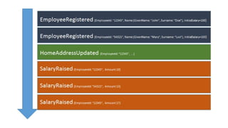 The document discusses the implementation of CQRS (Command-Query Responsibility Segregation) and Event Sourcing using RavenDB, highlighting the benefits of separating read and write operations. It includes concepts such as event sourcing, where all state changes are stored as events, allowing for an entity's state to be reconstructed by replaying these events. Several code examples illustrate how to implement commands and events within the context of an employee management system.