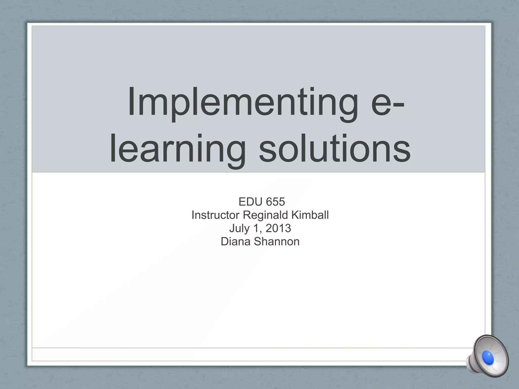 This document discusses implementing e-learning solutions in education. It defines e-learning and outlines some of its key benefits, including cost effectiveness, time savings, and minimizing travel costs. It also explores various collaboration and communication tools that can be used, such as email, discussion boards, and online presentations. Different instructional design models and frameworks are mentioned, including Merril's principles of instruction and Bloom's taxonomy. The document advocates leveraging technology to enhance learning outcomes and encourage student creativity. It provides best practices for media use and managing virtual classrooms, such as maintaining a dependable calendar and communicating clearly with students.