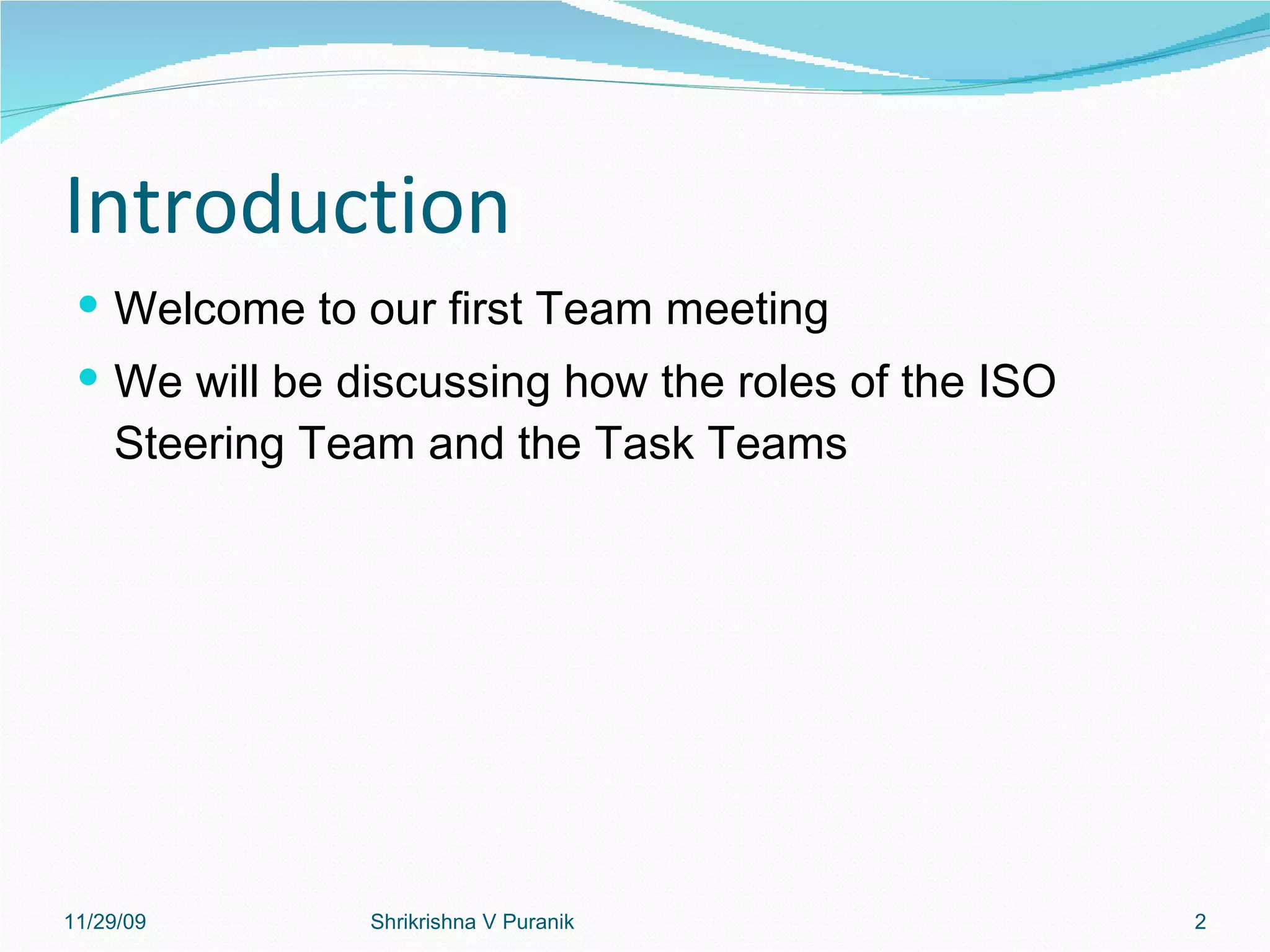 The document discusses the roles and responsibilities of an ISO steering team and task teams in implementing an ISO quality system. The ISO steering team will identify procedures that need development, assign teams and deadlines, and approve finalized procedures. Task teams will be led by steering team members and be responsible for developing specific procedures. The next steps outlined are training employees, having task teams review templates and current processes, submitting draft procedures for approval, implementing approved procedures, and conducting internal and external audits.
