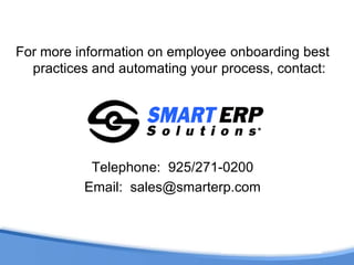 The document discusses best practices for employee onboarding using PeopleSoft HCM, emphasizing the importance of strategic onboarding to improve retention and productivity. It outlines the onboarding process, key activities, and the roles of various stakeholders in facilitating a successful transition for new hires. The document also highlights the impact of automation and effective onboarding systems on reducing costs and improving employee engagement.