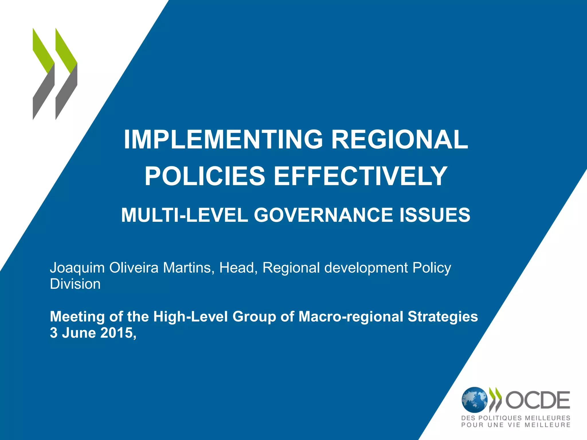 The document discusses the importance of effective multi-level governance in regional policies, identifying gaps in coordination among various governmental levels and proposing specific governance solutions to address these challenges. It highlights the need for strategic planning, capacity building, funding mechanisms, and improved accountability to enhance the effectiveness of public investment and urban-rural partnerships. Additionally, it emphasizes the benefits of collaborative frameworks in boosting productivity and public service quality across fragmented metropolitan areas.