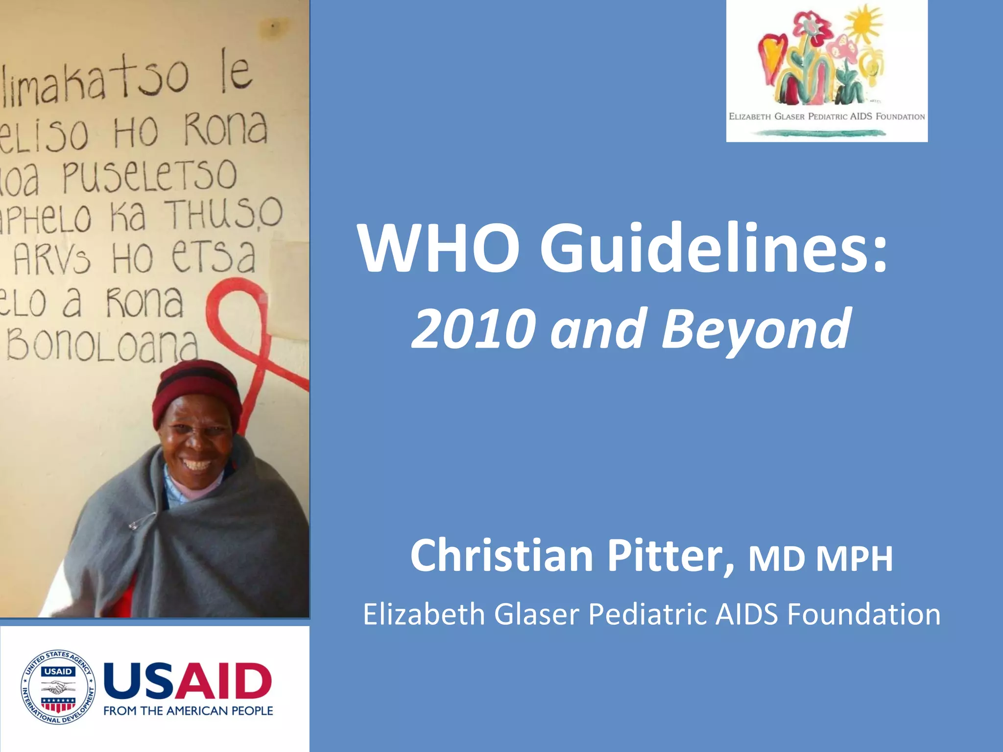 The document summarizes key points from the 2010 WHO guidelines for preventing mother-to-child transmission of HIV, treating pediatric HIV, and HIV treatment for adults and adolescents. Major changes included treating all HIV-positive pregnant women and children under 2, simplifying adult regimens, and emphasizing exclusive breastfeeding. Implementing these guidelines could virtually eliminate pediatric HIV but would require increased resources, integration, monitoring, and research to inform future revisions. The Elizabeth Glaser Pediatric AIDS Foundation aims to support countries in adapting and applying the guidelines through toolkits, advocacy, evaluation, and collaboration.