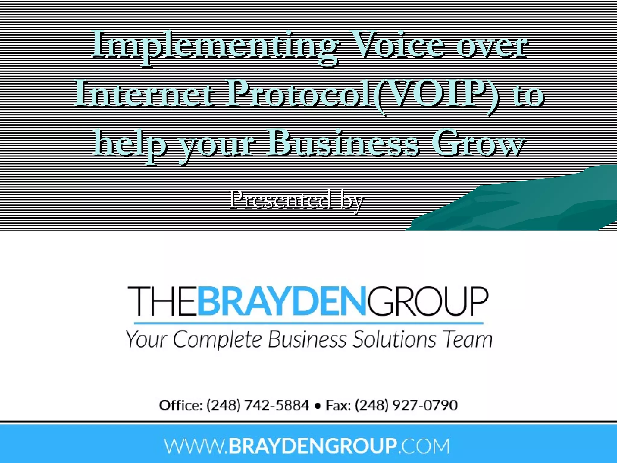This document discusses implementing Voice over Internet Protocol (VoIP) to help businesses grow. It defines VoIP and describes different system types and service options. The document outlines perceived myths about VoIP reliability and quality. Key benefits of VoIP include scalability, cost savings, mobility, and unified communications. Implementing VoIP can enable business growth strategies like supporting remote and home offices. The document provides considerations for network requirements, calculating ROI, redundancy, and managing a VoIP system.