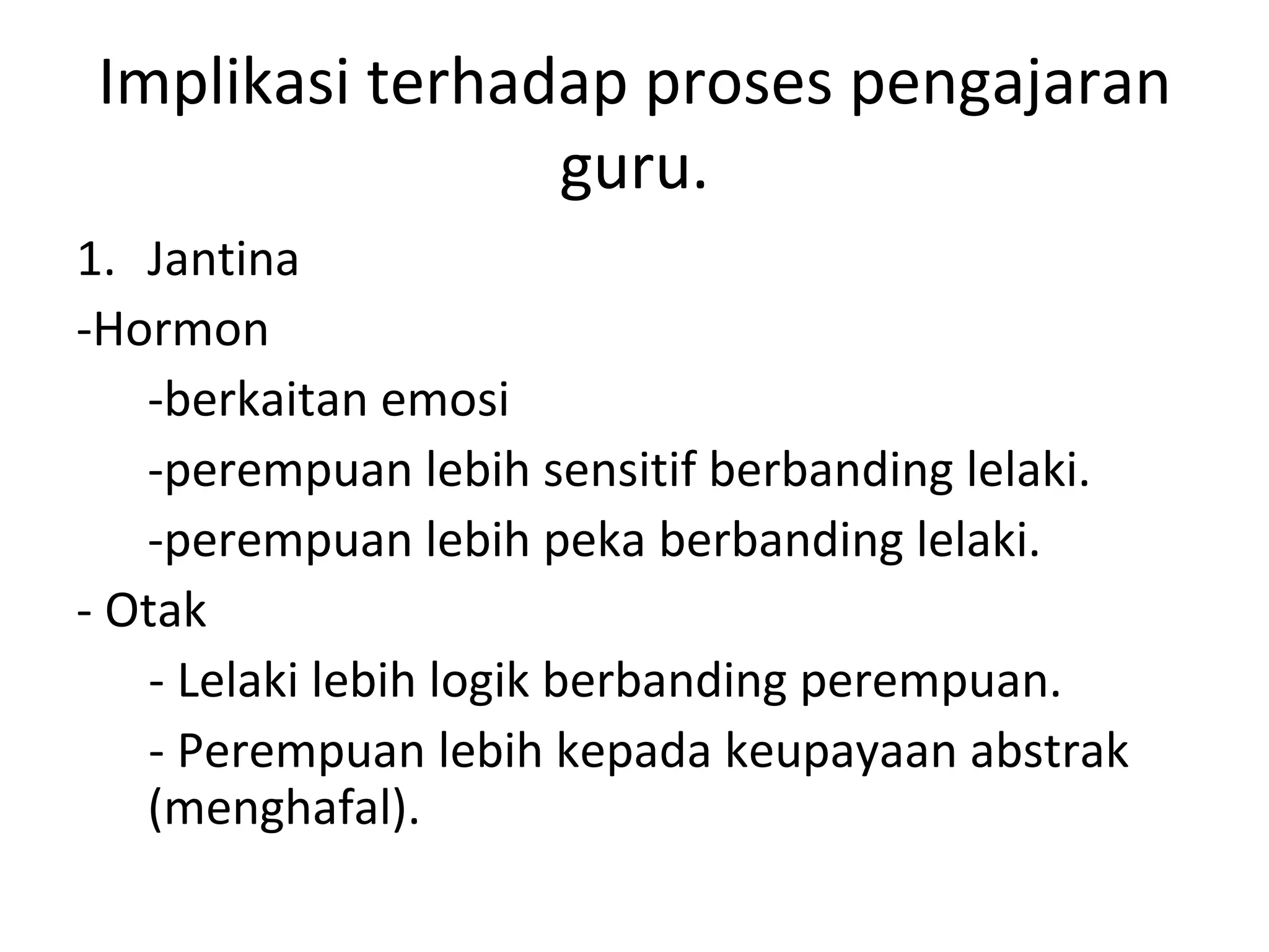 Dokumen tersebut membincangkan implikasi faktor-faktor seperti jantina, etnik, lokasi, dan sosioekonomi terhadap proses pengajaran guru. Faktor-faktor tersebut mempengaruhi perkembangan siswa dan kemahiran mereka dalam pelajaran seperti bahasa dan pengetahuan teknologi. Status sosioekonomi juga dapat mempengaruhi aktiviti tambahan siswa seperti tuisyen dan akses ke sumber rujukan.