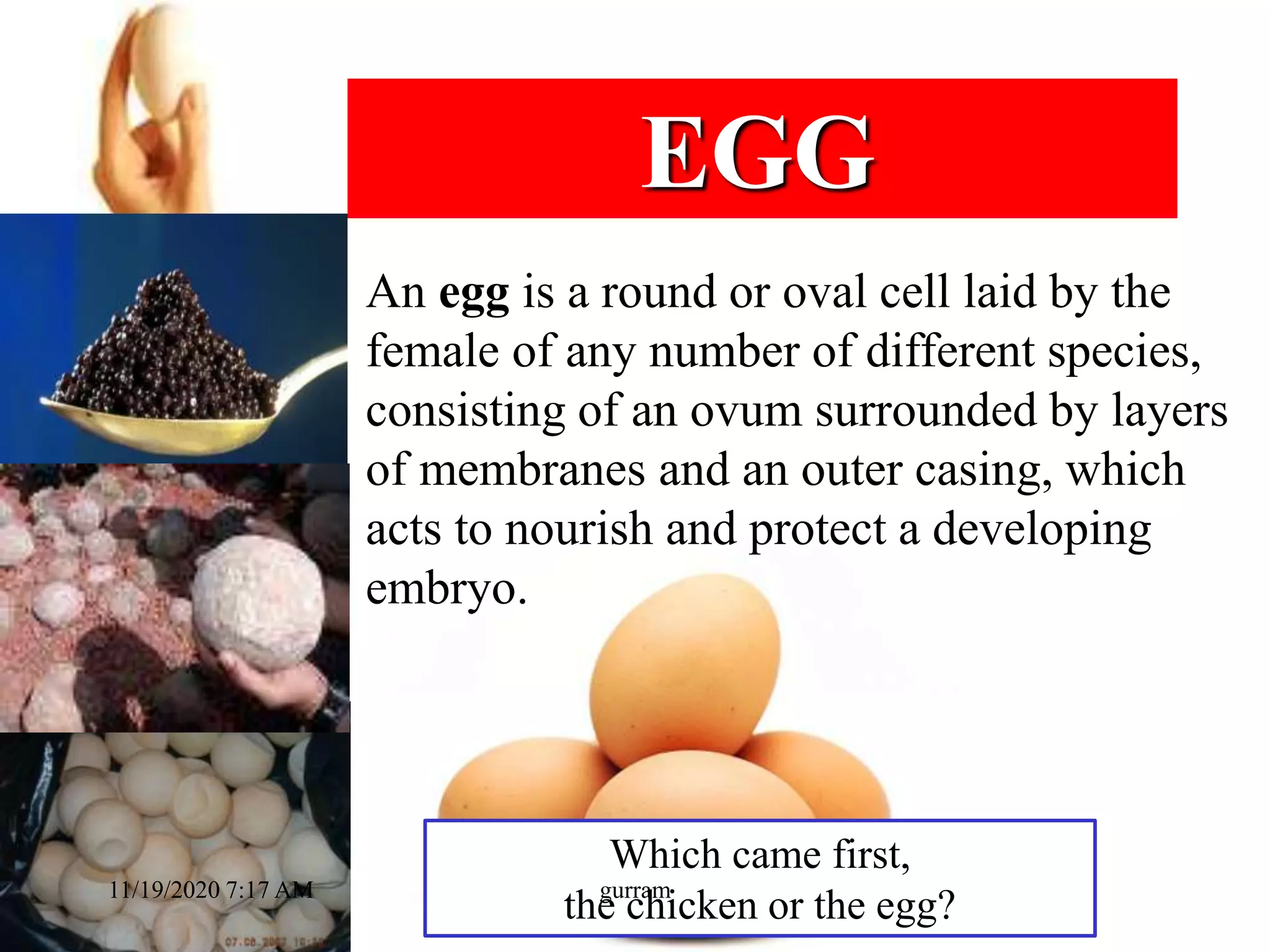 1. Eggs are formed in the ovaries of female animals and consist of an ovum surrounded by membranes and a shell. They provide nutrients like protein, vitamins, minerals, and fats.