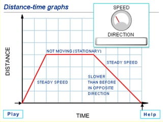 - The slope of a distance-time graph represents speed. The area under a velocity-time graph represents distance traveled.