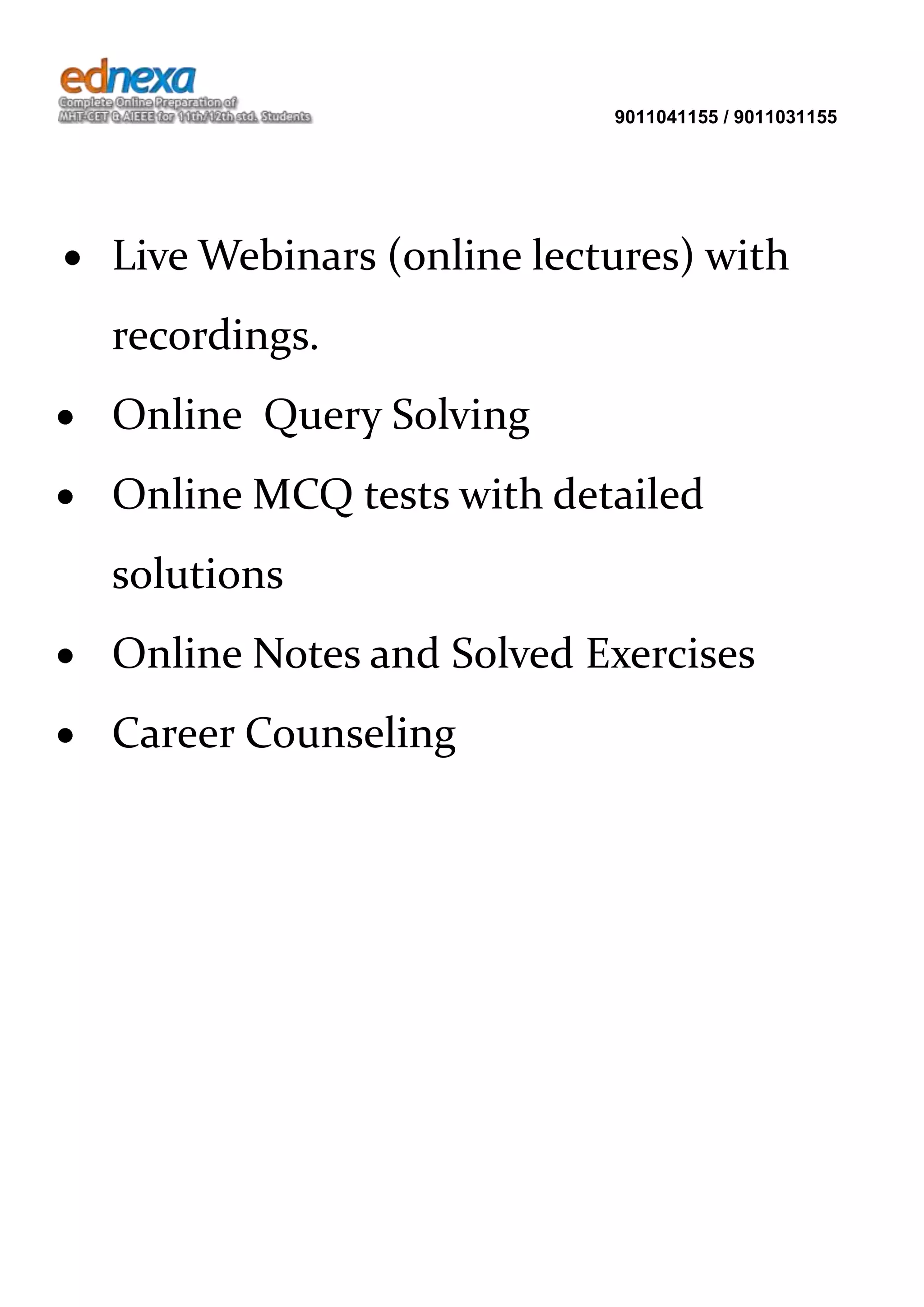 The document provides information about online courses on oscillatory motion and simple harmonic motion (S.H.M.) including live webinars, recorded lectures, online tests and solutions, notes, and career counseling. It then defines oscillatory motion and S.H.M., describing S.H.M. as periodic motion produced by a restoring force directly proportional to and opposite of the displacement. Several types and properties of S.H.M. are outlined, including the equations for displacement, velocity, acceleration, and differential equations of S.H.M. Examples and special cases are provided.