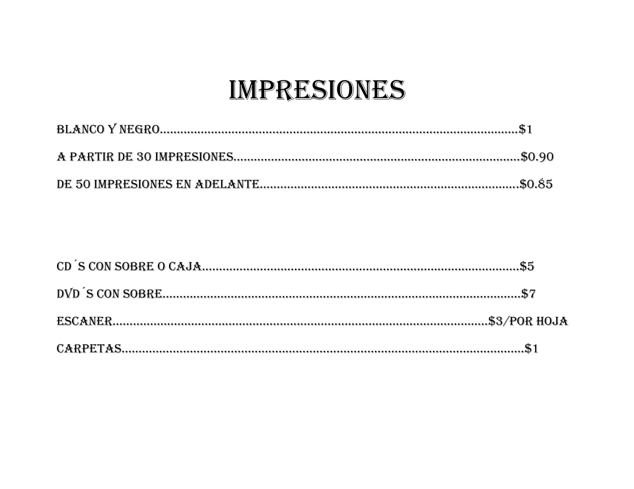 de 50 impresiones en adelante………………………………………………………………….$0.85