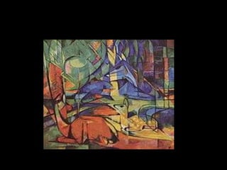 Impressionism began in the 19th century as artists painted outdoors to capture fleeting effects of light and color, influenced by photography, and Expressionism originated in Germany as a reaction to styles like naturalism that sought to distort reality and convey emotional experience rather than physical forms through vivid colors and compositions. Major Impressionist artists included Monet, Renoir, Degas, Cassatt, Pissarro and Sisley and Expressionist works aimed to provoke strong emotional responses.