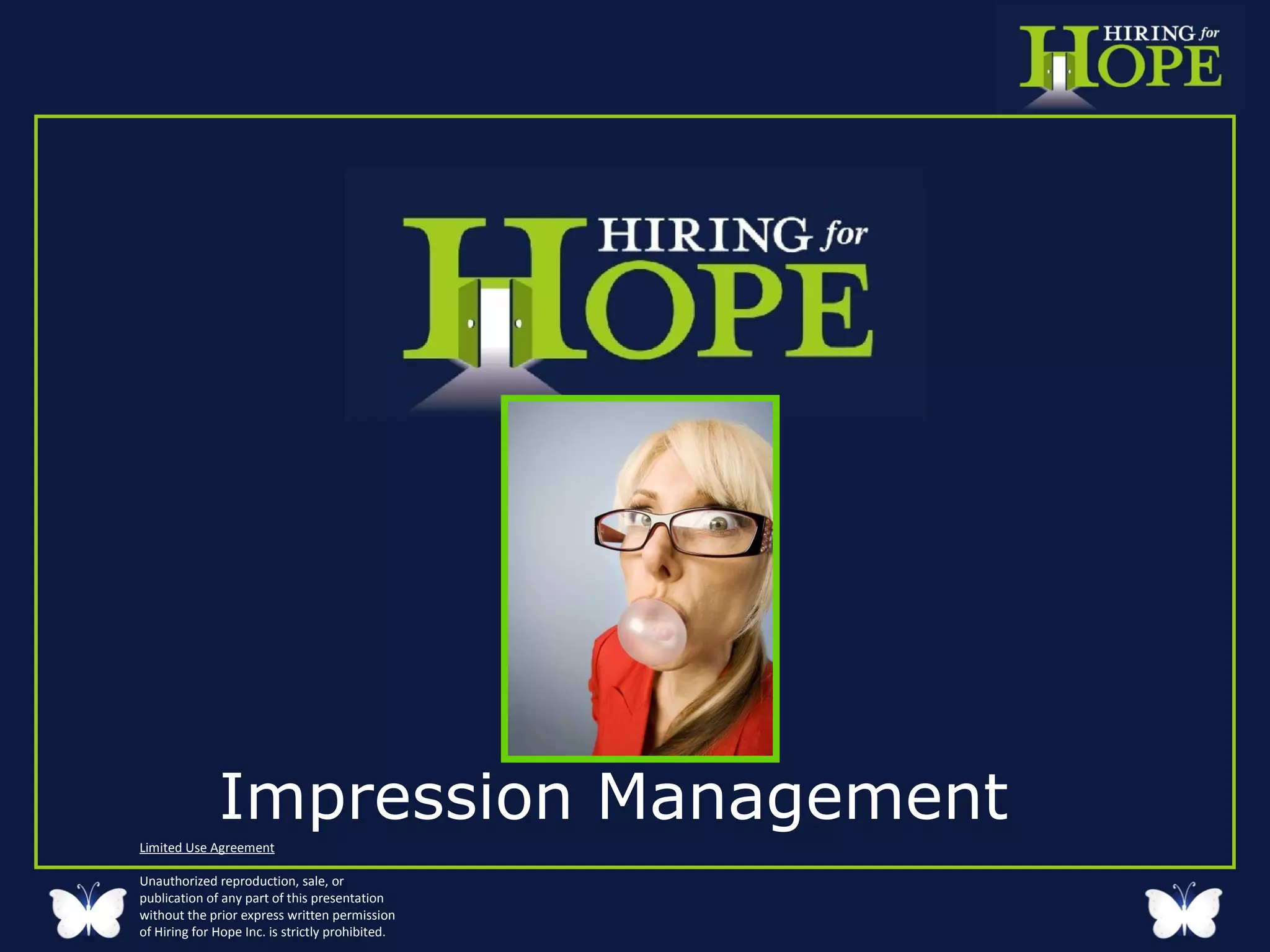 The document discusses impression management strategies for job interviews. It emphasizes that non-verbal communication such as appearance, body language, and reacting to an interviewer's signals are as important if not more than what is said. Key tips include researching the company and dressing appropriately for the role and industry, maintaining good posture and eye contact during the interview, and observing an interviewer's non-verbal cues to ensure the intended impression is being conveyed.