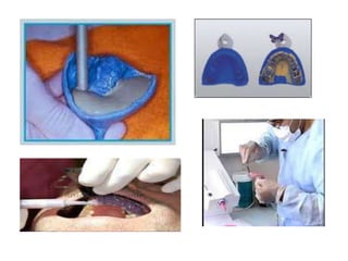 The document provides a comprehensive overview of various dental impression materials, detailing their properties, types, and applications. It discusses materials such as thermoplastic impression compounds, zinc oxide eugenol paste, agar hydrocolloid, and alginate, including their composition, manipulation techniques, setting times, advantages, and disadvantages. The importance of factors like viscosity, dimensional stability, and safety in relation to oral tissues is also emphasized throughout the text.