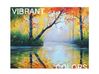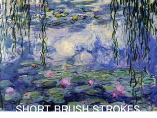 The document discusses different art movements including Impressionism, Post-Impressionism, and Expressionism. Impressionism used vibrant colors, depicted contemporary urban scenes, and employed short brush strokes to capture scenes as if seen in a glimpse. Post-Impressionism exaggerated forms, depicted rural scenes and everyday objects, used thick brush strokes, and also captured scenes as if seen briefly. Expressionism brought new standards to modern art by using swirling, swaying, and exaggerated brush strokes along with bold colors. Juan Luna and Fernando Amorsolo were mentioned as Filipino impressionists of their time.