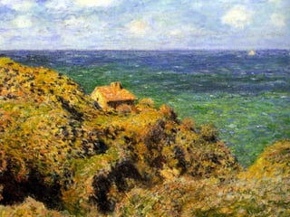 Impressionism was an art movement developed in the late 1800s by artists such as Vincent van Gogh, Claude Monet, Alfred Sisley, and Edgar Degas. They painted mostly outdoor scenes of everyday life using short, thick brush strokes to capture mood rather than detail. Their paintings were done en plein air using wet-on-wet techniques and emphasized the play of natural light. Their innovative styles violated the rules of academic painting at the time.