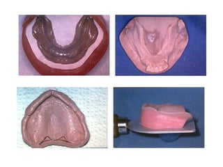This document describes the process for making complete dentures, including taking final impressions, border molding, and constructing the denture bases. Key steps involve: