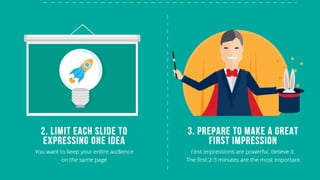 Creating an effective pitch deck can improve your presentation skills. A pitch deck is a slideshow used to summarize your idea or business plan in a visual format. Keeping your pitch deck concise with 3-5 slides focusing on the problem, solution, and ask is an easy way to engage audiences and get your point across.