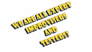 This document discusses using improv as an analogy for software testing. It defines both improv and testing, noting their similarities in creating or evaluating something spontaneously through experimentation. It suggests following some basic rules can lead to more successful improv performances and testing, such as saying "yes, and", listening, avoiding negativity, knowing the environment, and having performance ideas. Overall, it presents improv as a novel way to think about testing and how certain improv principles can improve testing practices.