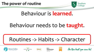 Bertram Richter, deputy headteacher at Southam College, emphasizes the importance of teaching behavior through structured routines to address post-lockdown learning challenges, aiming to establish high expectations and improve student engagement. The plan outlines specific routines to enhance classroom behavior, such as active listening, answering questions correctly, maintaining proper posture, and being prepared with materials. Through these efforts, the school seeks to foster a positive learning environment and support students in catching up on missed learning time.