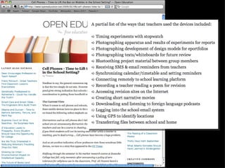 The document discusses improving learning through the use of technology. It argues that goals, strategies, and tactics need to be aligned, with the goal being to define what students should learn. Technology is presented as a tactic that can be used to achieve learning strategies. A variety of technologies and tools are described that can help with engagement, collaboration, assessment, and access to information. The document advocates embracing new technologies and possibilities to simplify learning and make students more knowledgeable and able.