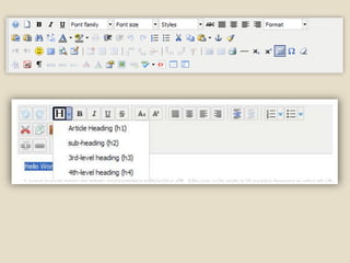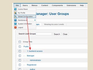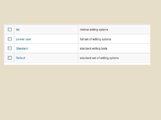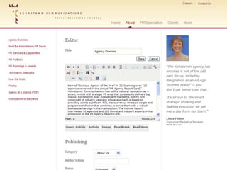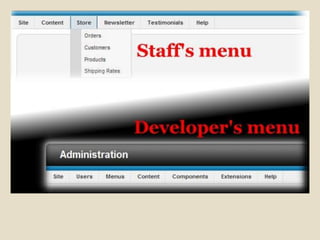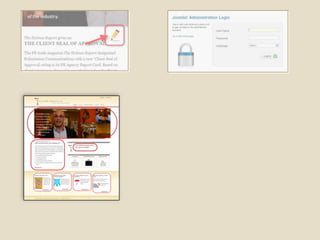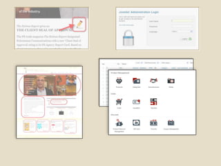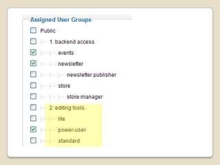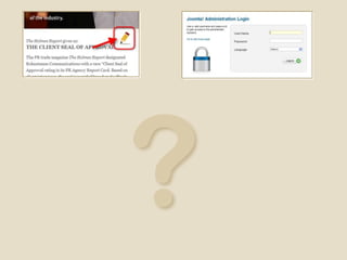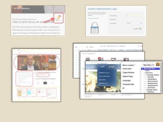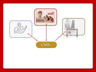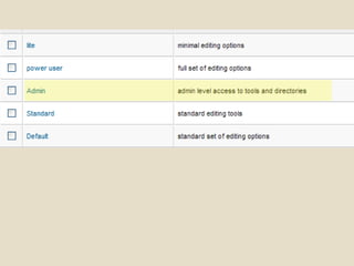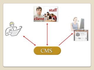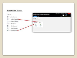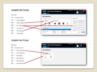 The document outlines a strategy for enhancing a client's user experience by improving various areas of their content management system (CMS). It focuses on usability enhancements in front-end editing, backend roles, client edit screens, user segmentation, and task-based workflows. Key recommendations include recognizing user differences and refining the dashboard and access control features.