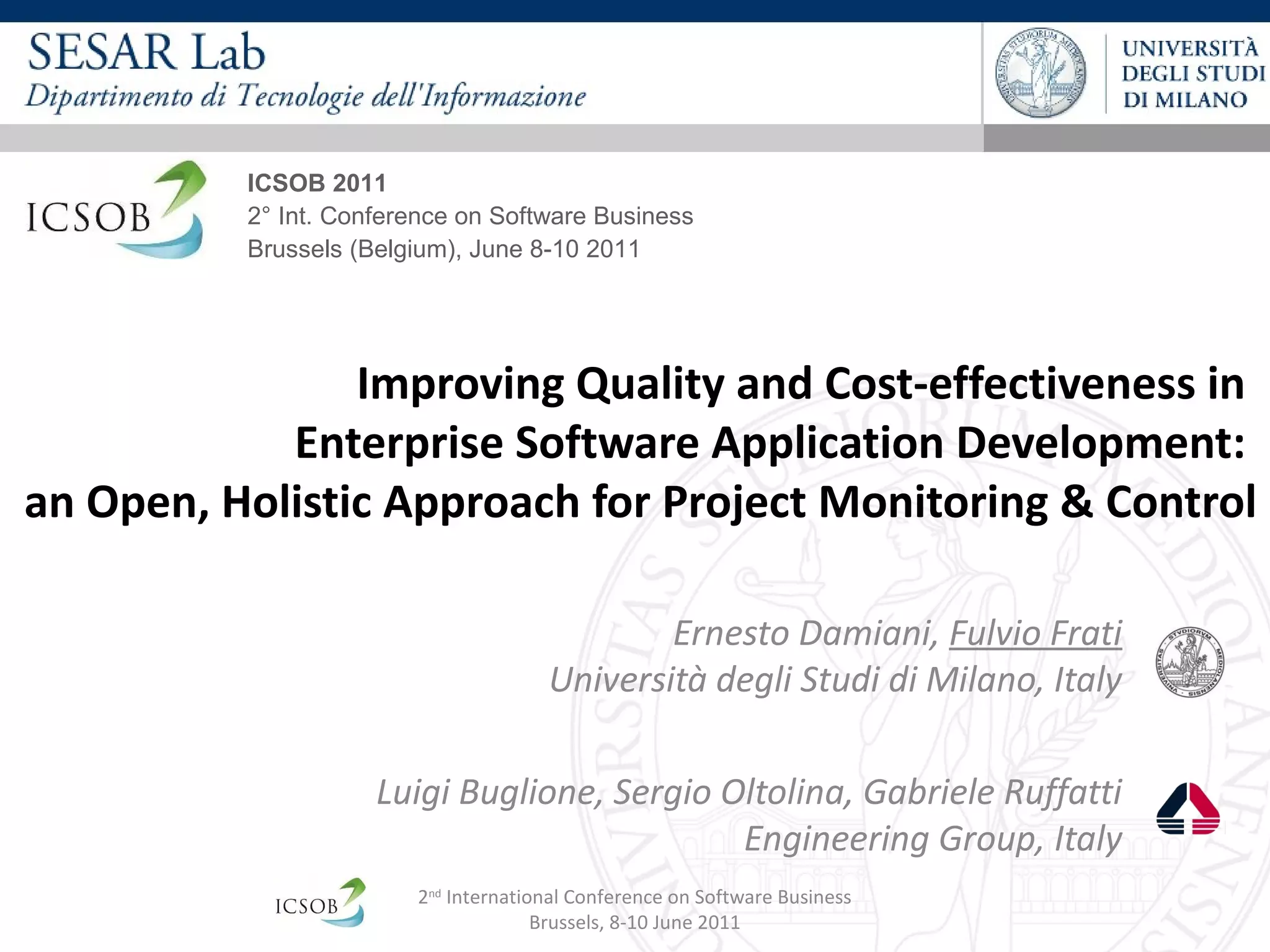 The document discusses a comprehensive approach to software project management, focusing on improving quality and cost-effectiveness through enhanced project monitoring and control strategies. It introduces spago4q, an open-source platform designed for process monitoring and automatic data gathering, and outlines various methodologies such as GQM, BMP, and QEST-LIME for effective measurement strategies. A case study demonstrates the practical application of this framework in software development, leading to improved management of production costs and quality.