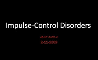 Intermittent explosive disorder involves discrete episodes of failure to resist aggressive impulses that result in serious assault or property damage. Between episodes, individuals feel remorse and regret. Etiology may involve psychodynamic factors like attempts to manage difficult emotions, psychosocial factors like exposure to violence, or biological factors like abnormalities in brain regions involved in impulse control. Treatment involves psychotherapy and medication to manage impulsivity and aggression.