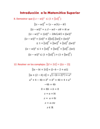 12. Resolver en los complejos: || 𝑧̅ + 2𝑖|| = || 𝑖𝑧 − 2||