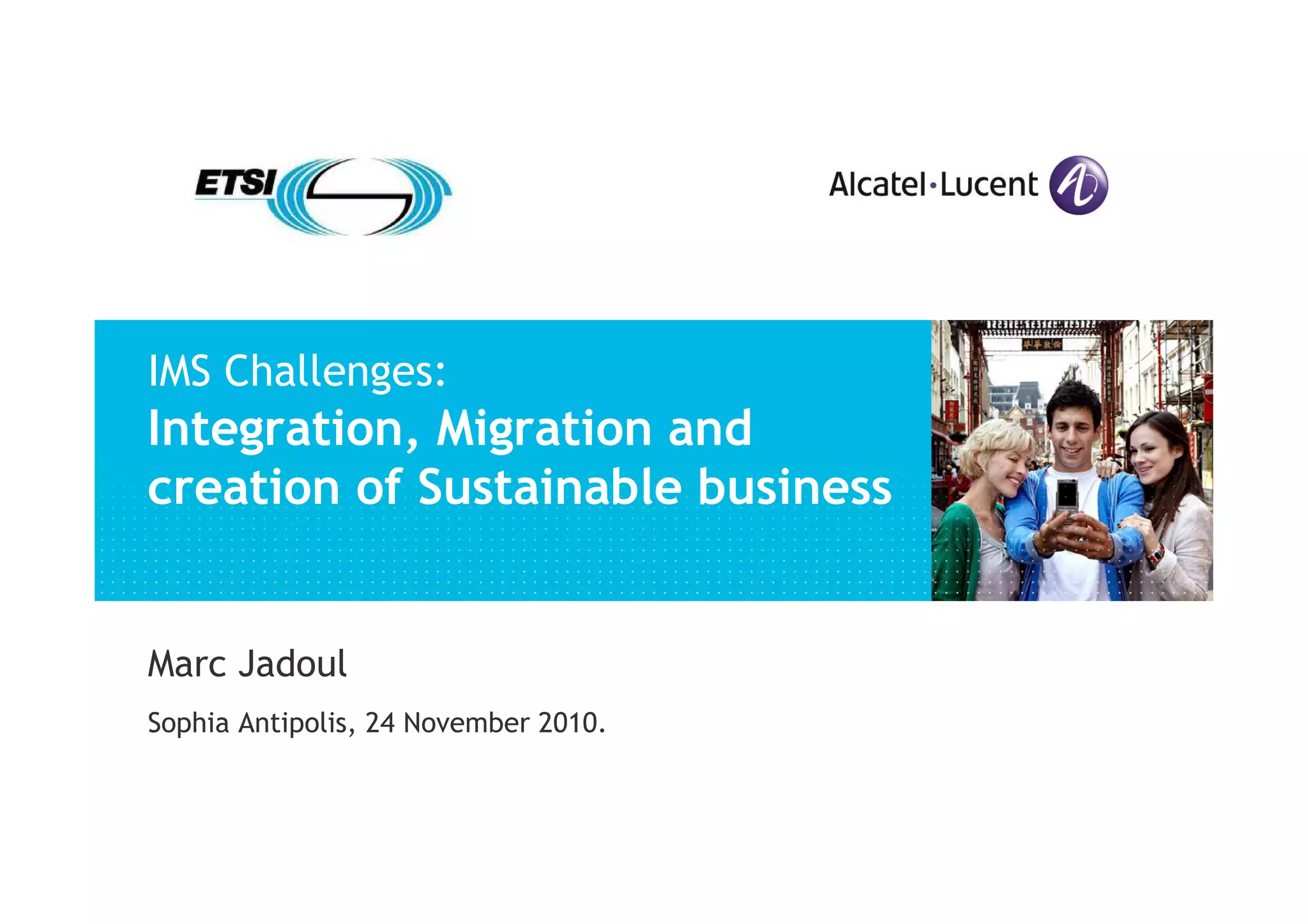 The document discusses the challenges of integrating, migrating, and creating a sustainable business model for IMS (IP Multimedia Subsystem). Key challenges include mitigating integration costs, transitioning subscribers from PSTN to IMS, and developing a business model that benefits all stakeholders. It emphasizes the importance of measurement, automation, and a holistic approach in overcoming these obstacles.