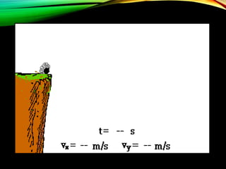 This document discusses projectile motion, which is motion affected by both gravity and an initial velocity. It explains that a projectile's path is a parabolic trajectory, with the horizontal motion unaffected by gravity and the vertical motion experiencing constant acceleration due to gravity. The vertical and horizontal components of a projectile's motion are independent, allowing calculations of horizontal distance and vertical velocity/distance. Different launch angles result in different ranges, with complementary angles producing the same range.