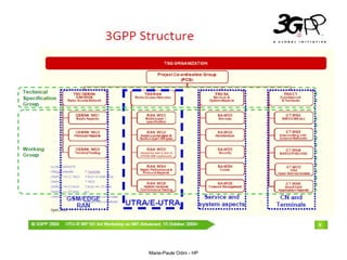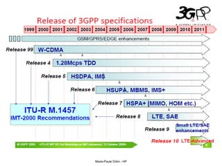 This document provides an overview of the IP Multimedia Subsystem (IMS) standards and architecture. It discusses the evolution from 2G to 3G/4G mobile networks and the integration of IMS. The key components of IMS are described including the Call Session Control Function (CSCF), Home Subscriber Server (HSS), Application Servers (AS), Media Resource Functions (MRF), and Breakout Gateway Control Function (BGCF). Registration and call flow examples are provided to illustrate IMS signaling. Approaches to migrating existing networks to IMS are also summarized.