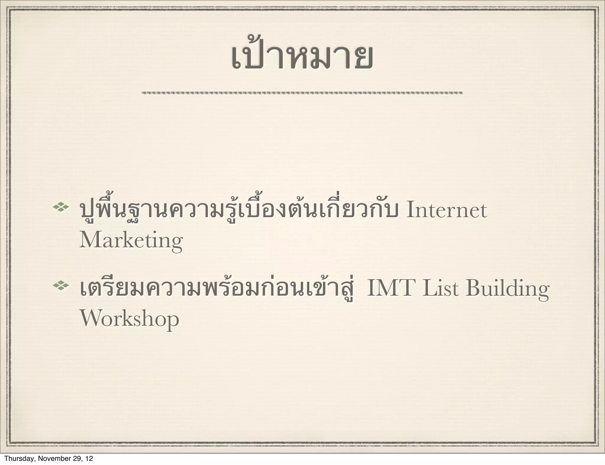 List Building = การสร้างทรัพย์สินเป็น Mailing