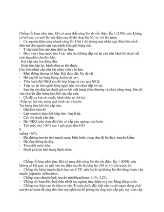 Điện giật là một tình huống cấp cứu cần xử lý ngay, yêu cầu cắt nguồn điện trước khi tiến hành cấp cứu. Chẩn đoán dựa vào triệu chứng lâm sàng như ngừng tim, bỏng và chấn thương, cần áp dụng các biện pháp hồi sinh tim phổi và theo dõi tình trạng bệnh nhân tại trung tâm cấp cứu. Điều trị bao gồm kiểm soát rối loạn nhịp tim, suy thận và các triệu chứng hậu quả khác từ điện giật.